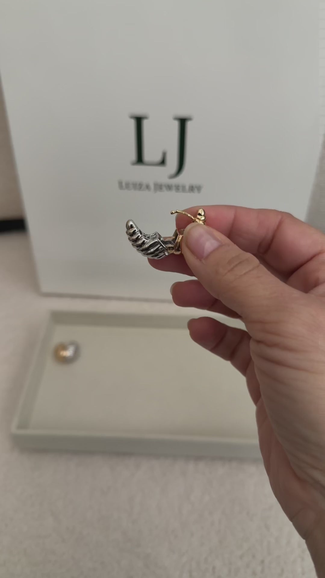 Your Luiza piece is crafted through metal casting with a copper base and layers of 18k gold or rhodium plating. All designs are nickel-free, hypoallergenic, and finished with a protective varnish to enhance durability and shine.