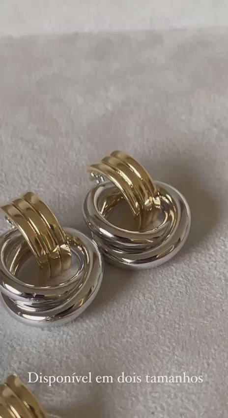 Brinco leve e minimalista no mix de dourado com prata. Ideal para o uso diário, com toque moderno e acabamento de qualidade. Produzido no Brasil.