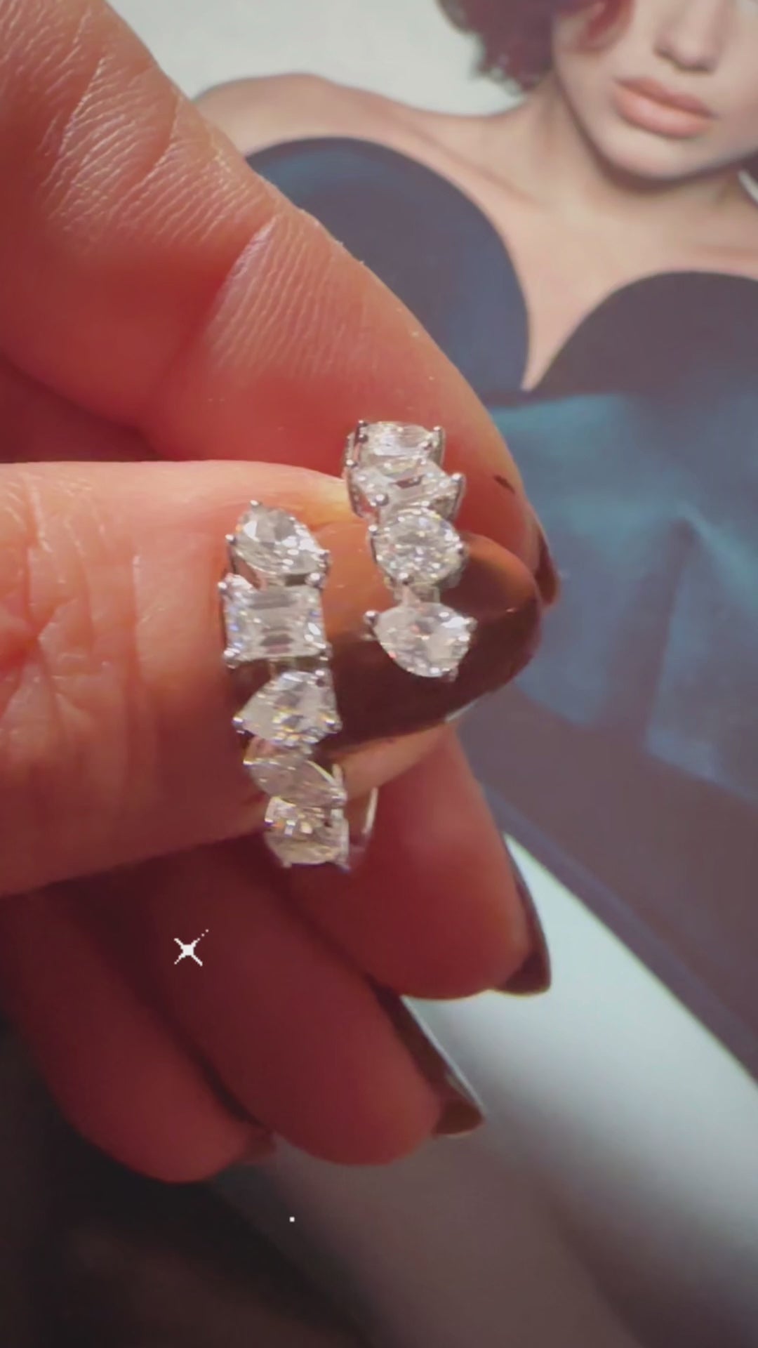 Leona mixes different moissanite cuts in a modern open design that catches light (and compliments) from every angle.