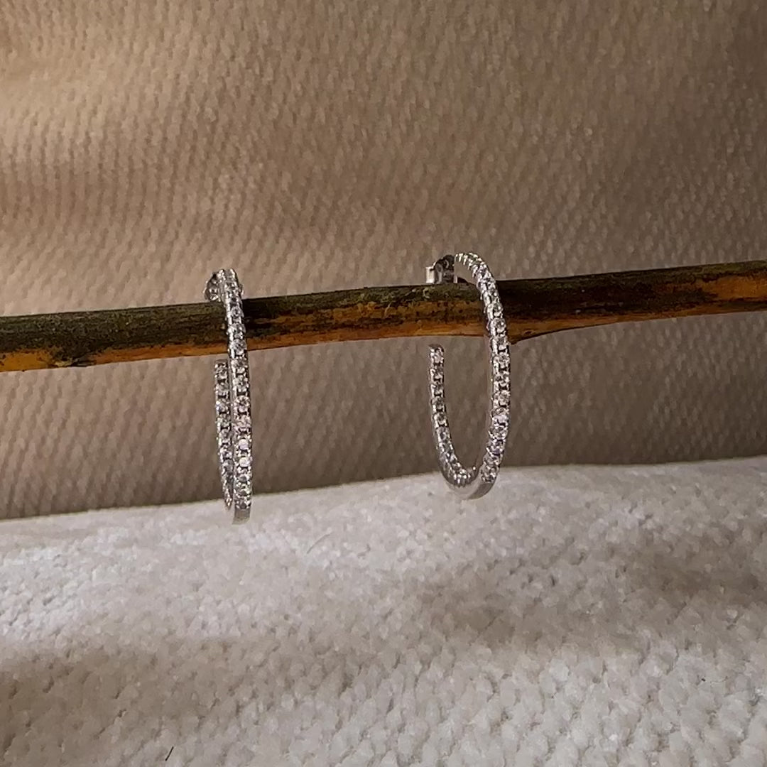 Brinco de argola em prata 925 com zircônias brilhantes.
