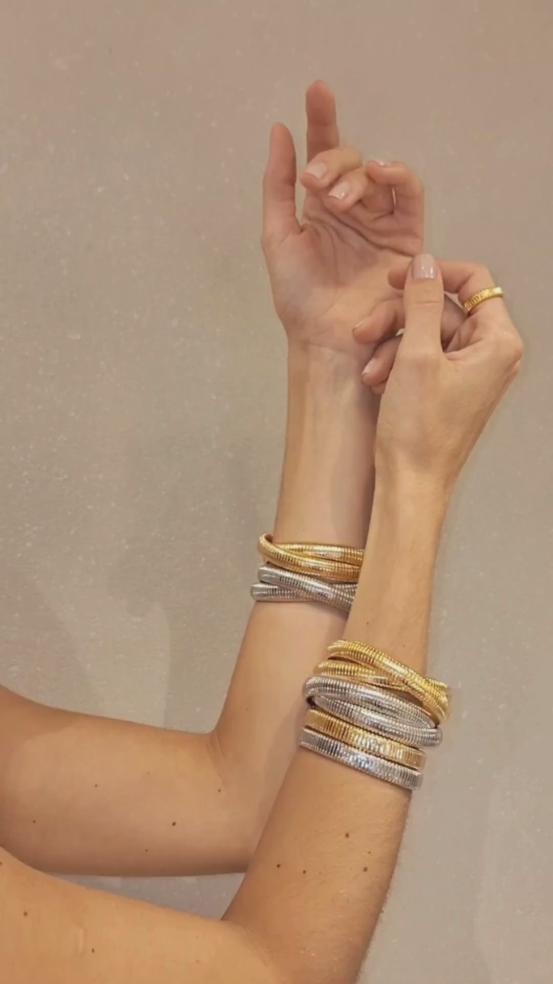 The Madison Duo Snake Bracelet wraps the wrist with a sculptural, crossover silhouette. Designed to stand out yet stay timeless, it adds texture and confidence to your stack or shines on its own. Made for women who love bold simplicity.